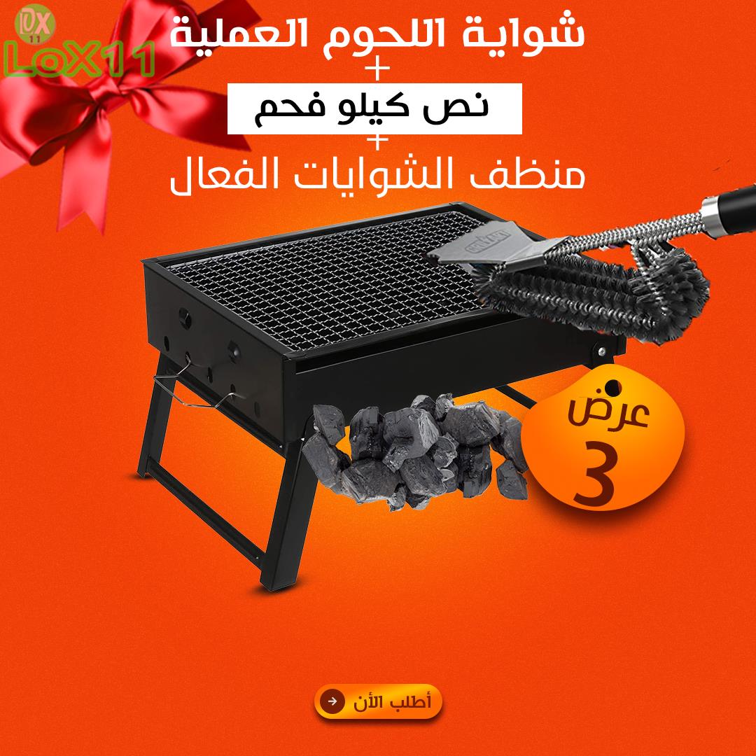 عرض 3 شوايه اللحوم العمليه+ نص كيلو فحم+منظف الشوايات الفعال