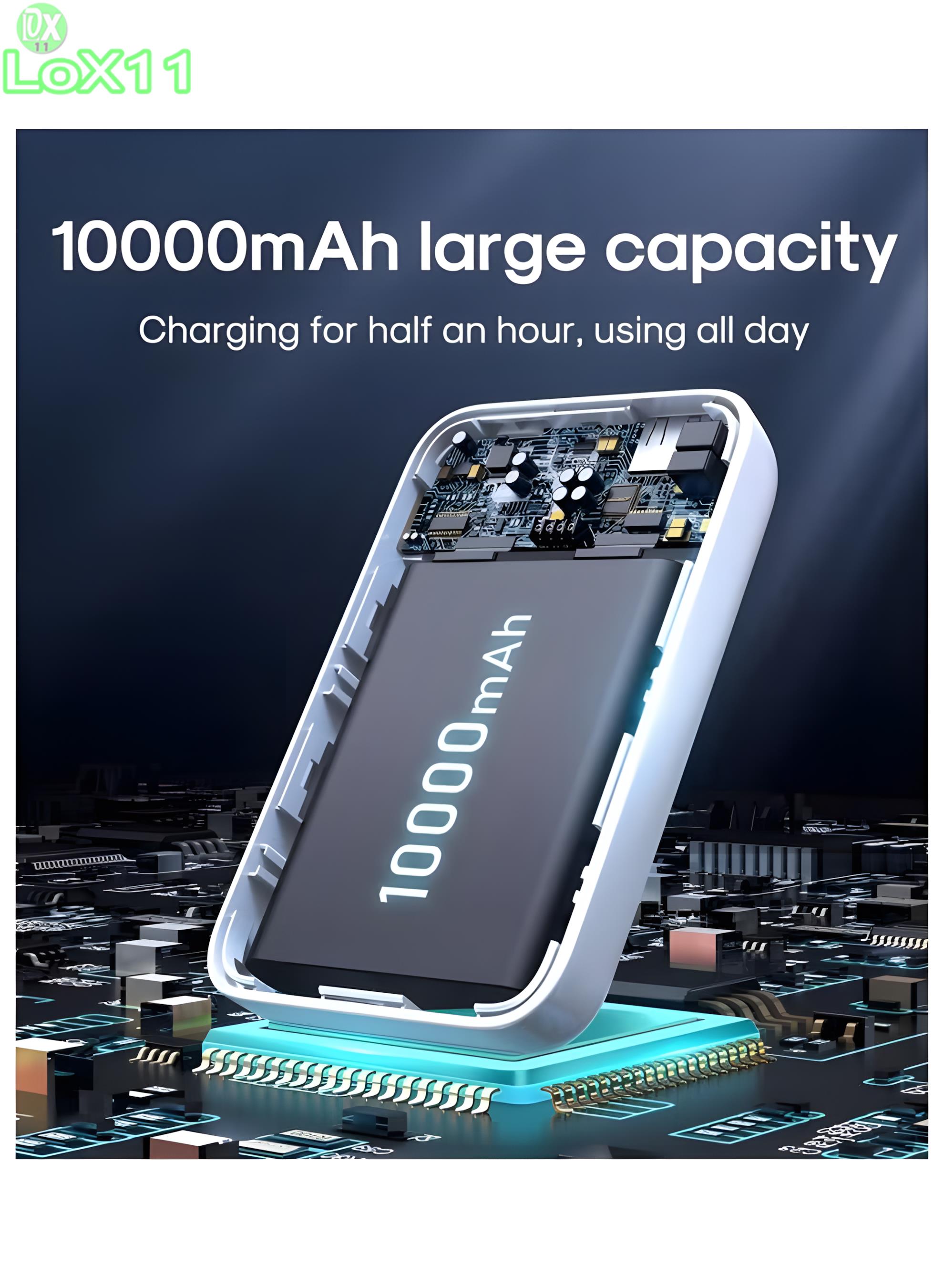 • • 💯 سعة 10000mAh تشحن موبايلك أكتر من مرة بدون قلق.