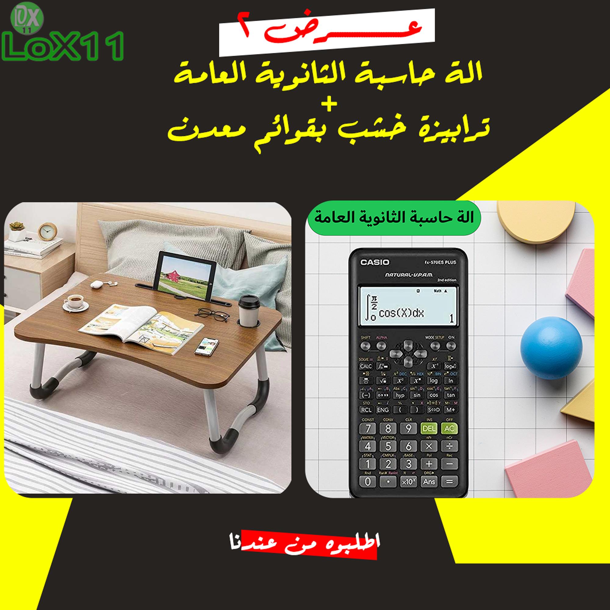 عرض قطعتين اله حاسبه الثانويه العامه+ترابيزه خشب بقوائم معدن