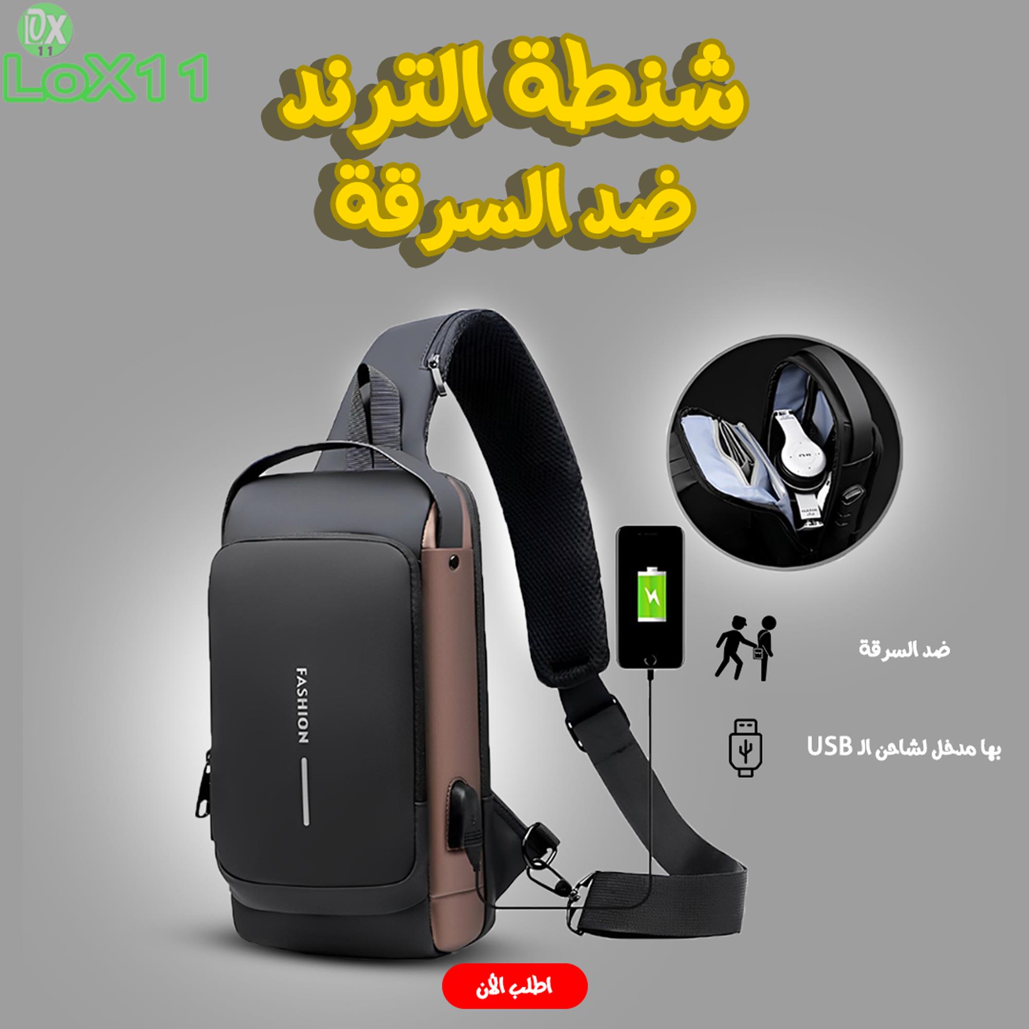 • الشنطة ديه أنسي أنها تتسرق ! عشان لو أتسرقت الحرامي مش هيعرف يفتحها عشان بتقدر تحطلها باسورد علي السوستة مش بس كدا الشنطة خامتها مقاومة للمياه + انها بيجي فيها مخرج USB للباور بانك كل ده ومستني أيه أطلبه حالاً .